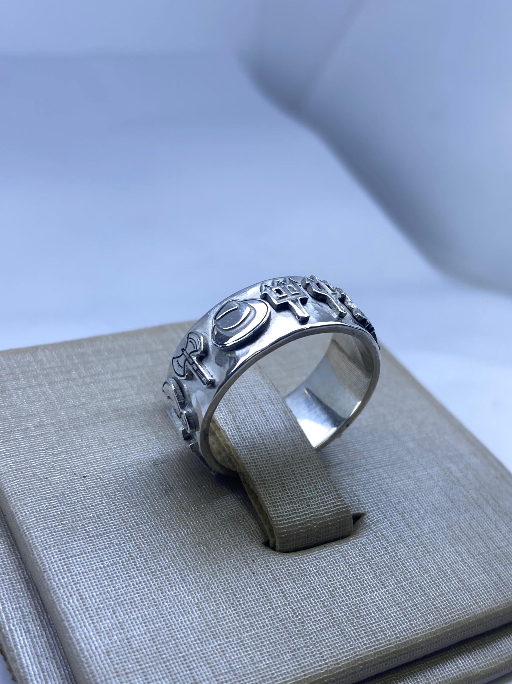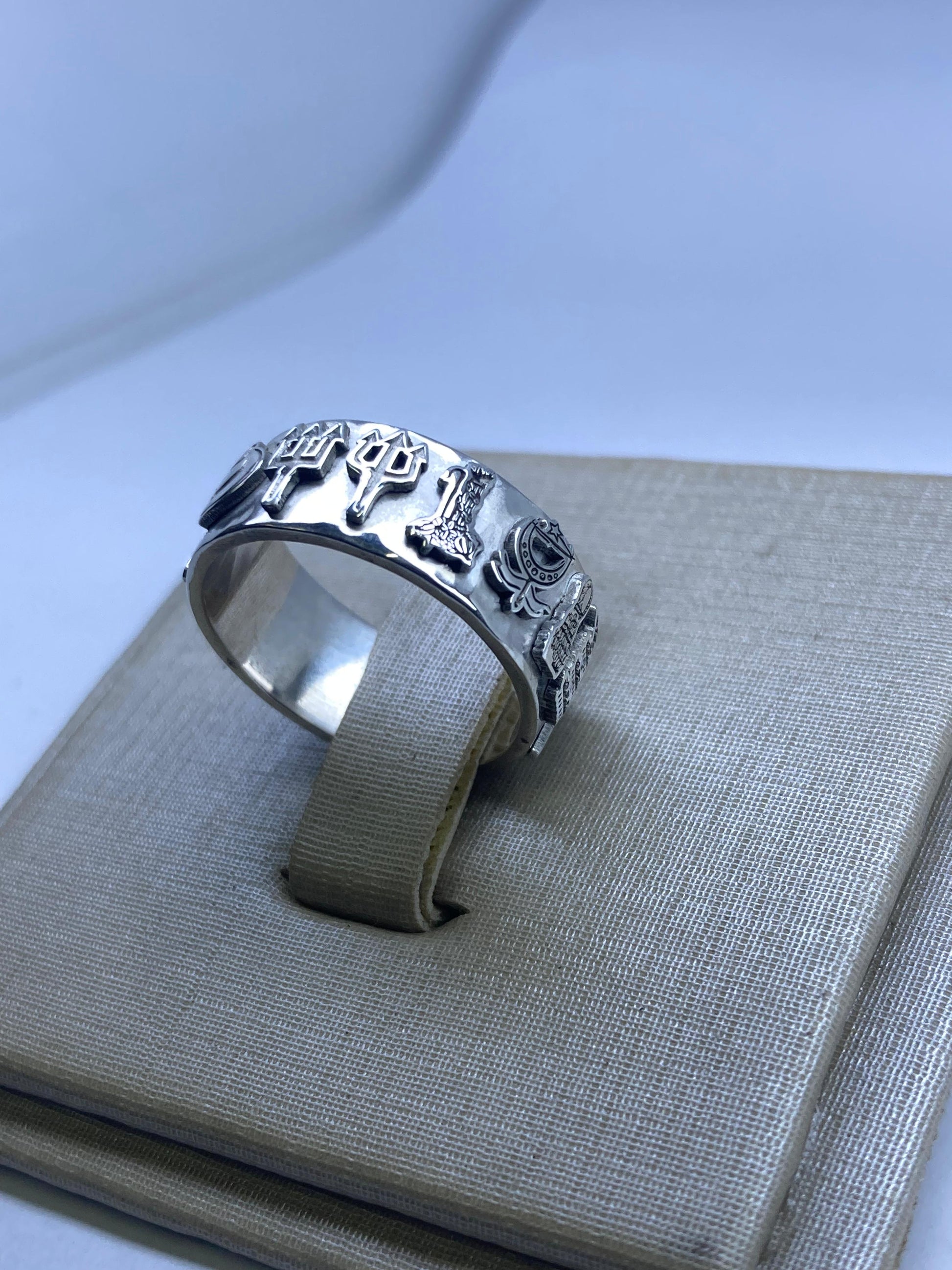 Este anel único reúne em sua forma a força e a proteção das 7 Linhas de Umbanda, trazendo símbolos que representam todos os Orixás em perfeita harmonia. Forjado em prata legítima 925, cada detalhe foi cuidadosamente trabalhado para carregar o axé e a energia das forças da natureza.