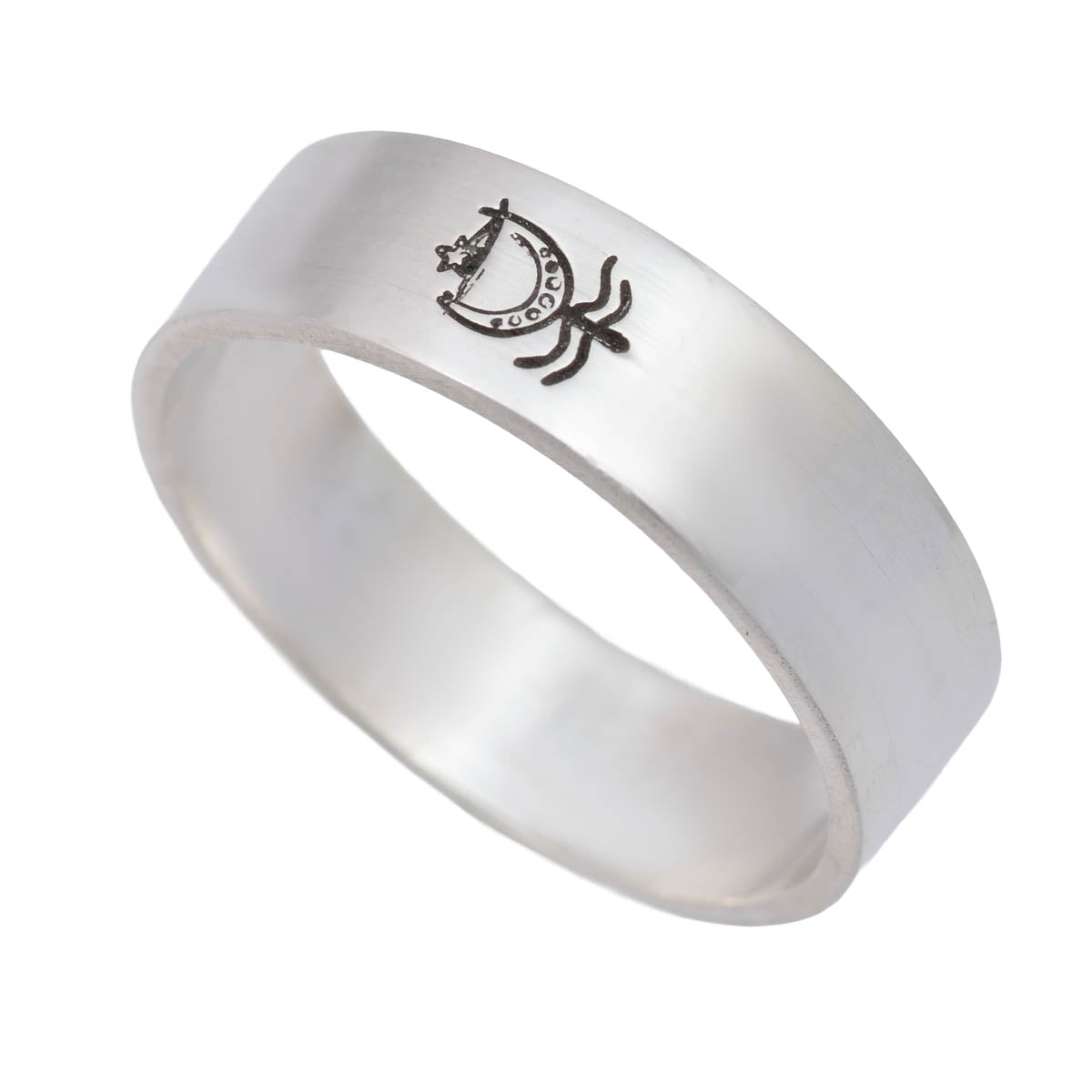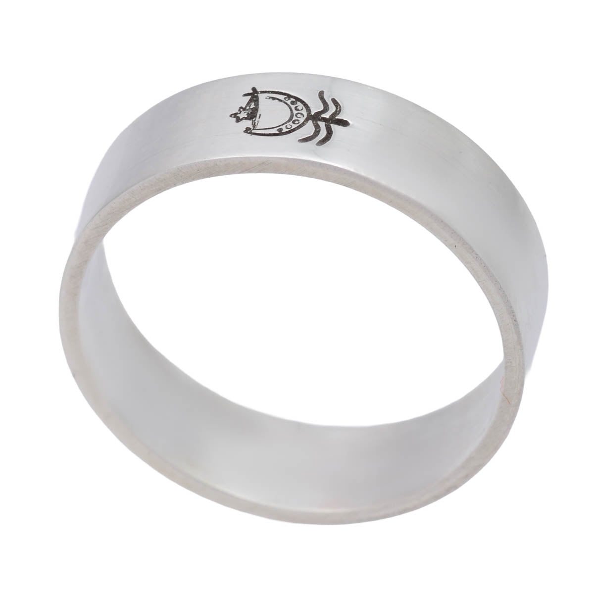 Rainha do mar, mãe generosa e protetora, Iemanjá é fonte de amor, prosperidade e acolhimento. Este anel, trabalhado em prata legítima 825, traz gravado o abebé, seu espelho adornado, símbolo da beleza, da realeza e da força das águas salgadas.